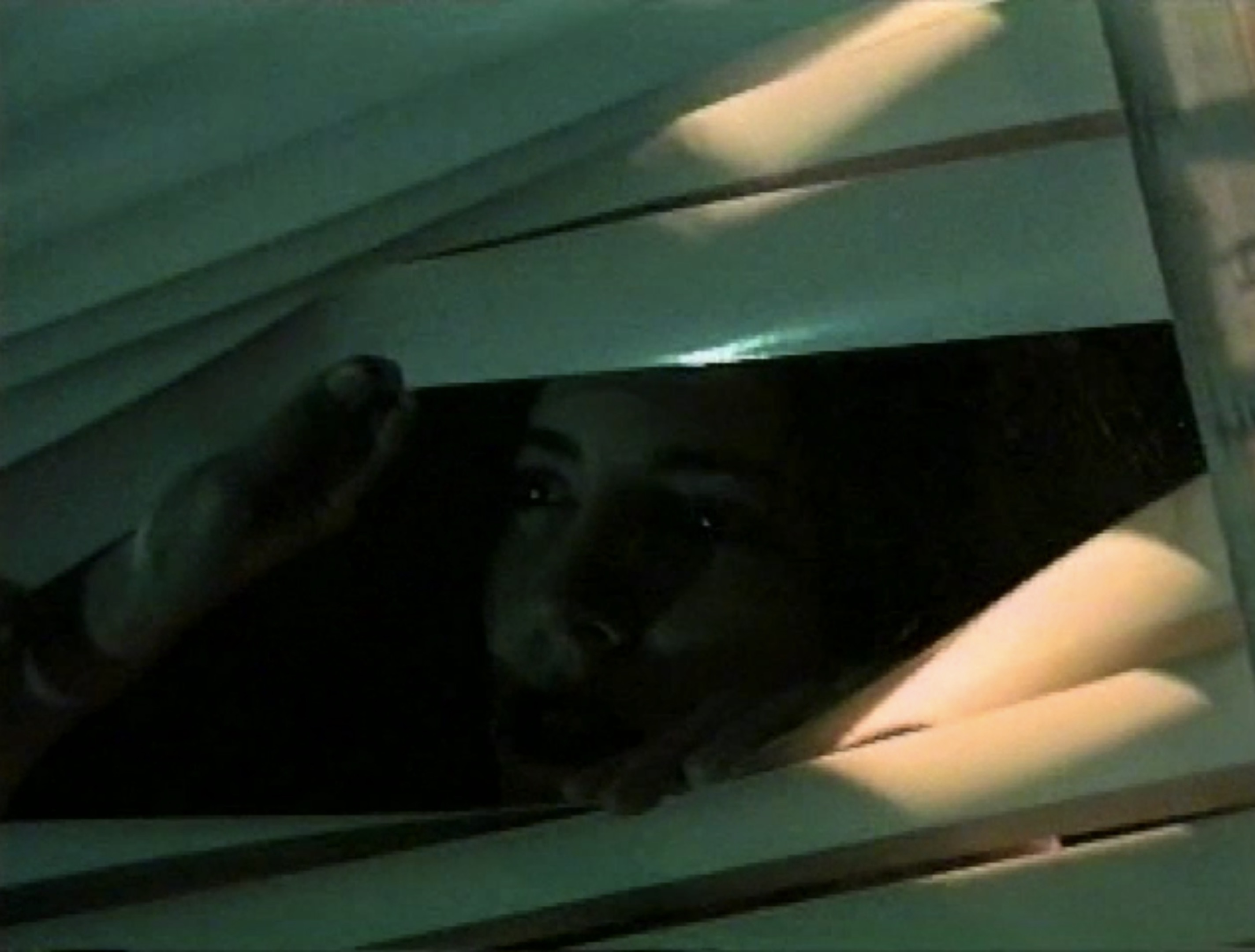 Una persiana, un espejo y varias mujeres se vinculan dentro de una habitación.