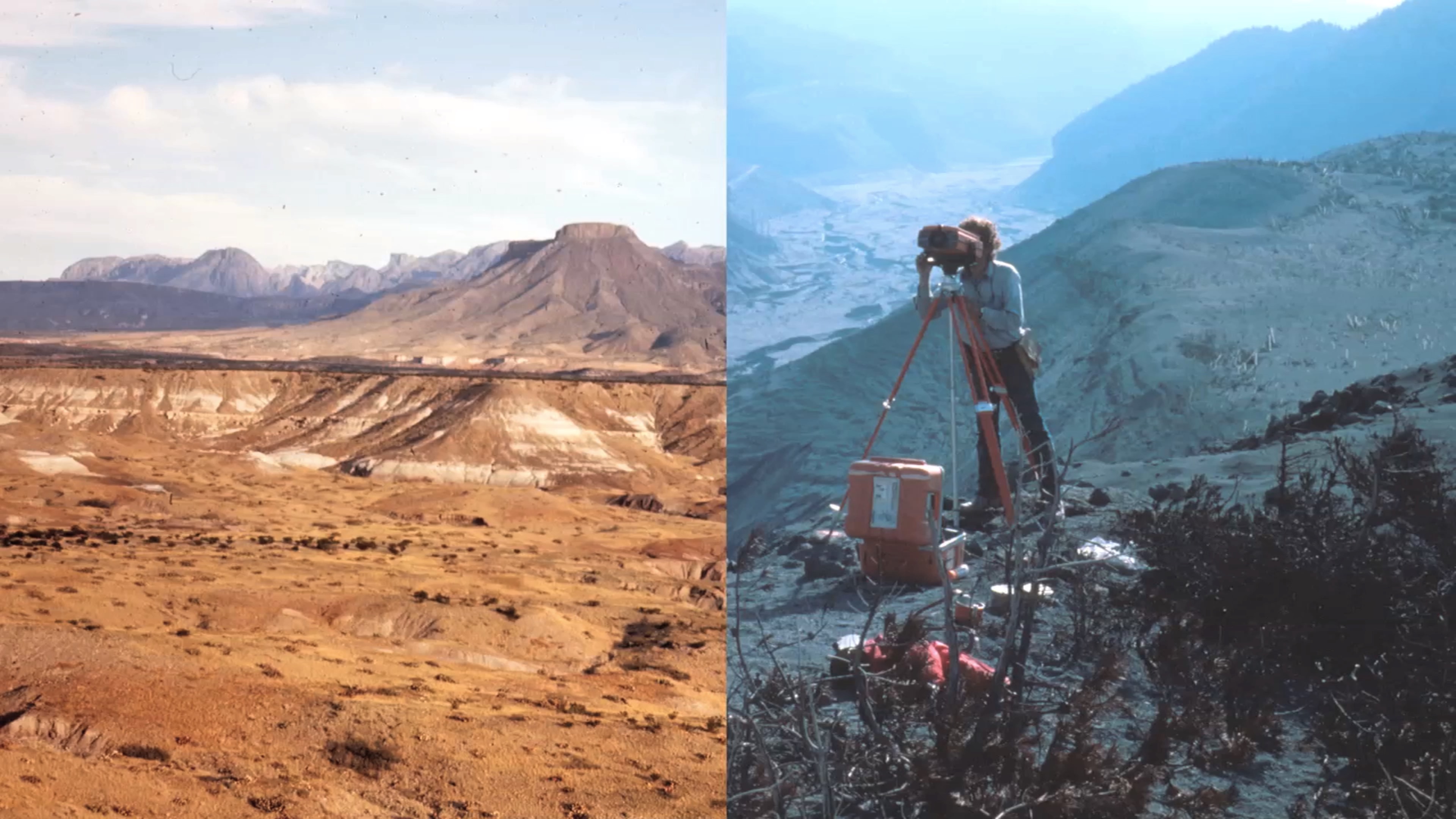 Mientras se muestra fotografías de parajes áridos y montañosos, una voz nos describe un espacio desconocido.