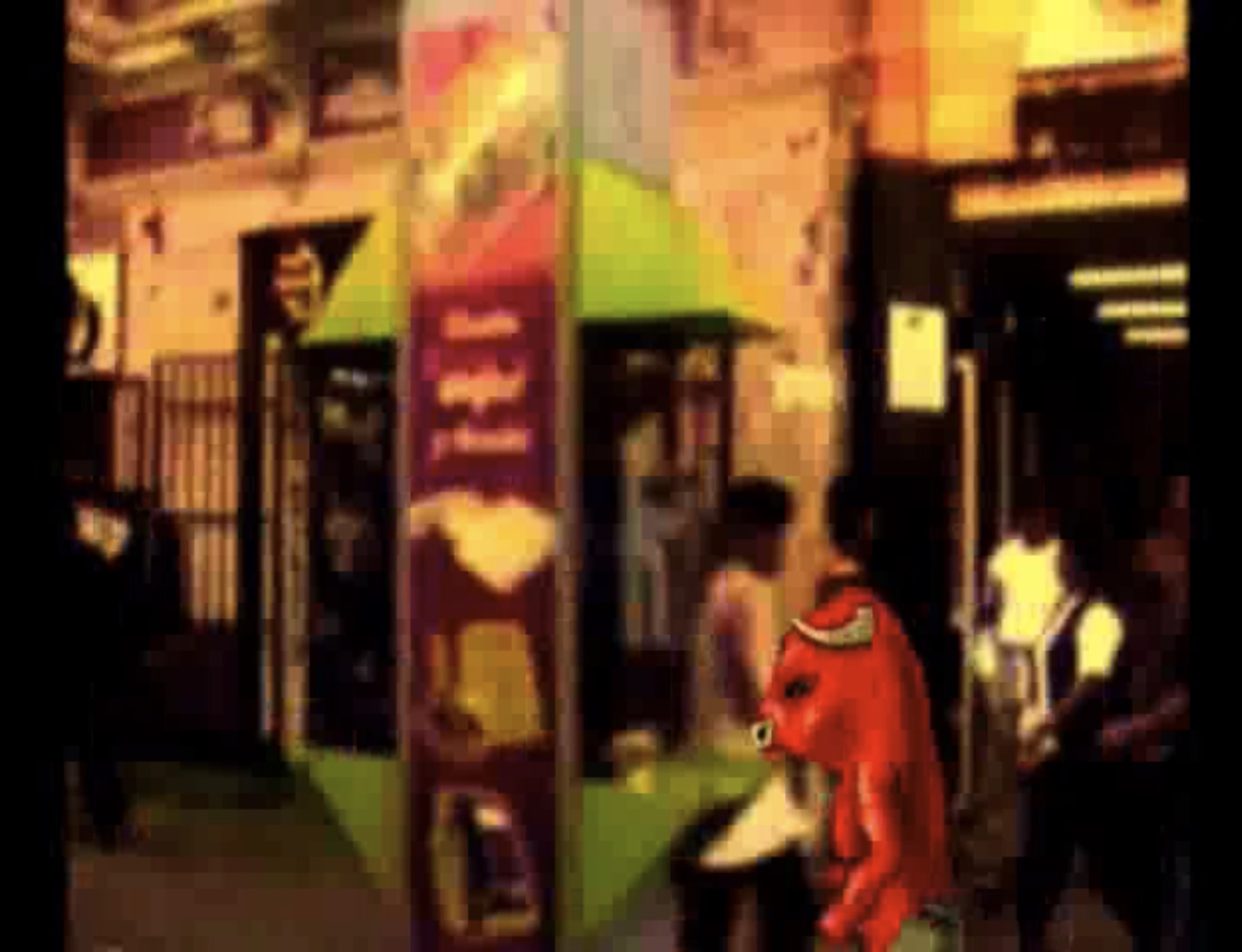 Acompañado de un ruidoso fondo musical, la imagen animada de un toro rojo violento recorre diversas calles de la ciudad.