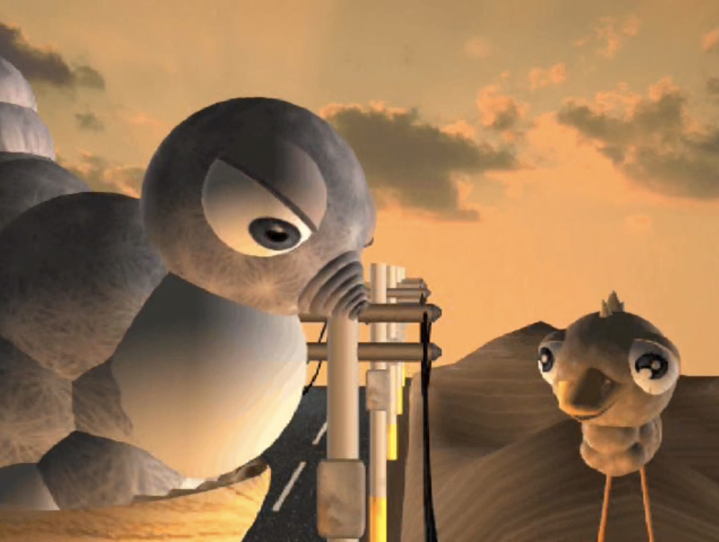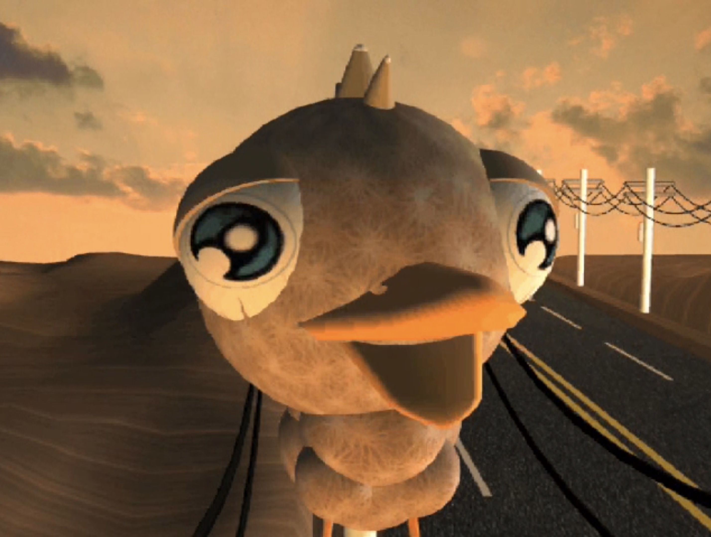En esta animación 3D, se nos presenta el recorrido de una pequeña ave por los cables de los postes. El trabajo juega creando un contraste entre lo inocente y lo trágico, configurando así un relato de aprendizaje para el diminuto protagonista, pero una sátira para el espectador. Se trata de una animación bizarra y extraña donde diferentes personajes, algunos extraídos de nuestra conciencia común, llegan a un no-lugar, un espacio de locura pero también de realidad. Durante esta breve animación en 3D, se genera un mundo de comunicaciones de rarezas y estimulaciones complejas.