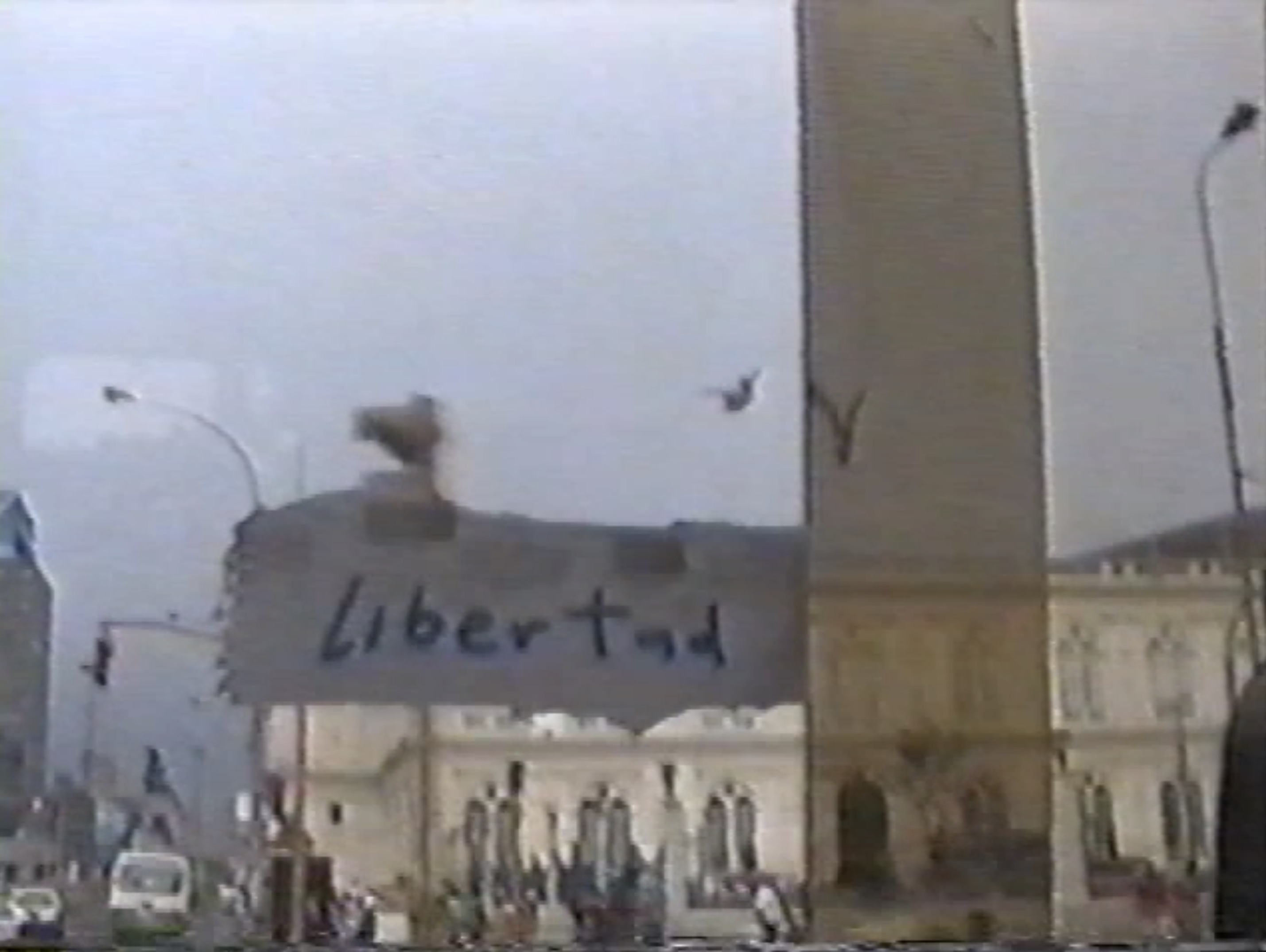 Vemos por la ventana de un bus las calles de la ciudad y diversos textos escritos en papel que progresivamente van mostrándose.
