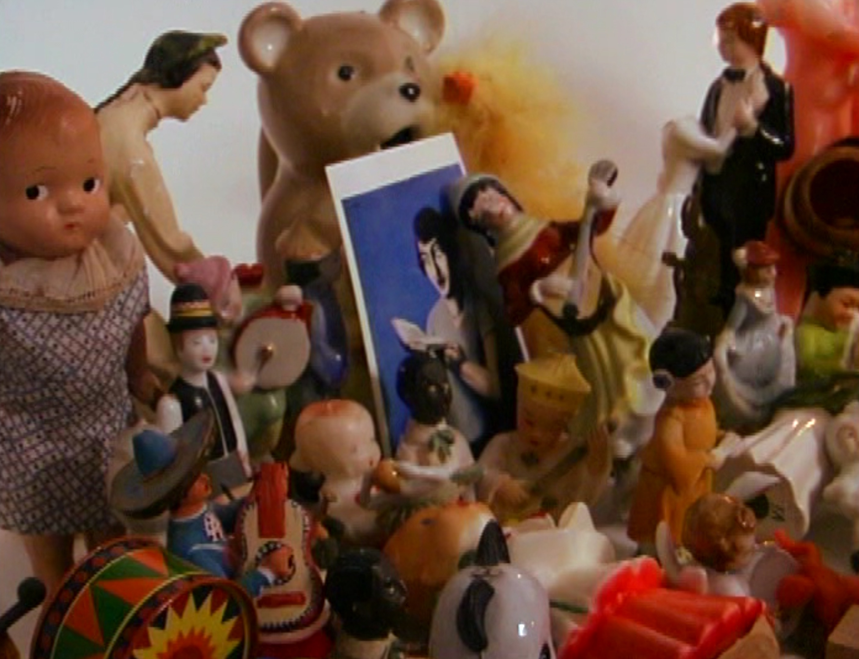 Secuencia de diversos objetos y juguetes en posturas y miradas teatralizadas que sugieren marcos escénicos con alusión melancólica, alegre u onírico.