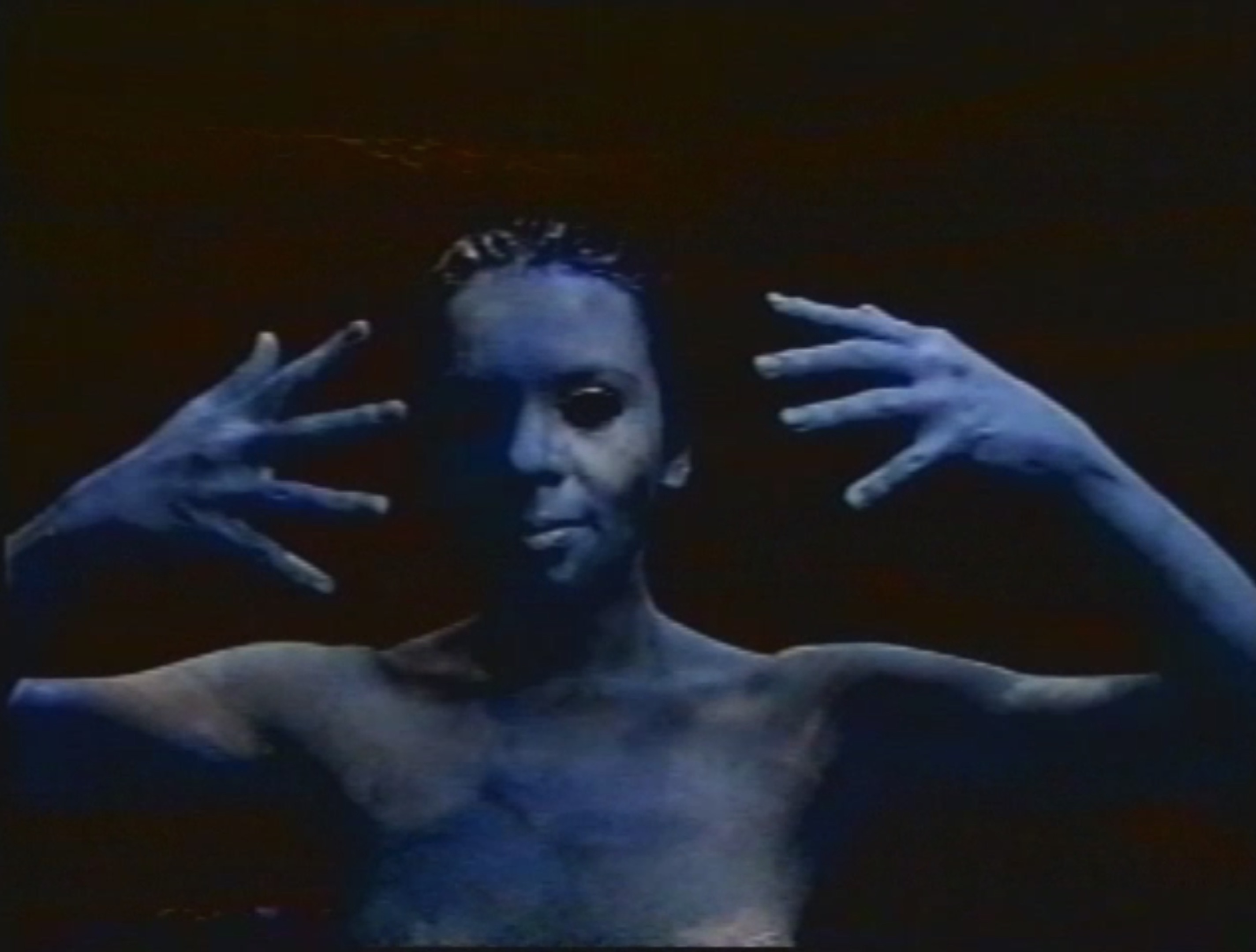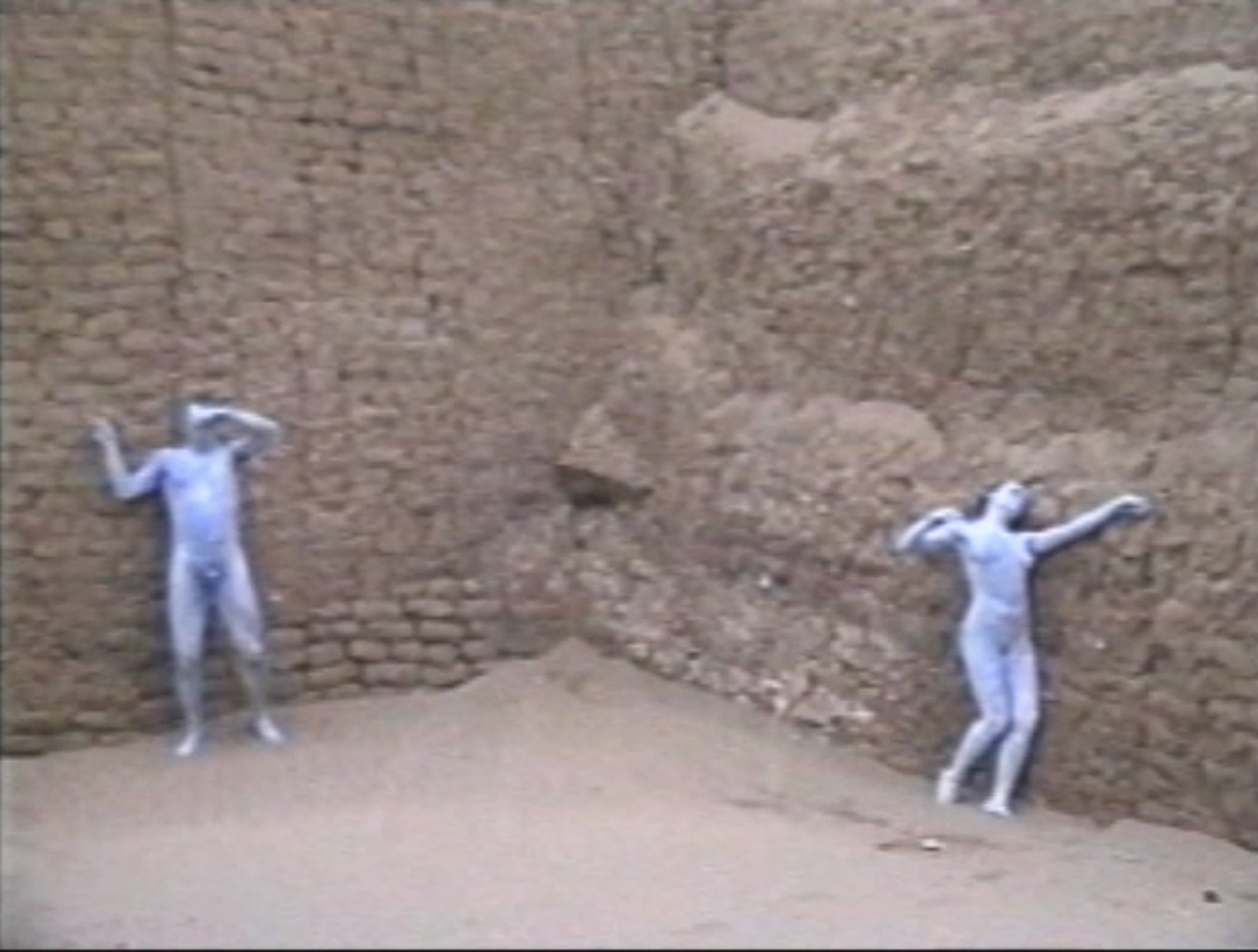 El video performance en el sitio arqueológico mochica de las Huacas del Sol y la Luna en Trujillo sirve de escenario para una performance de carácter erótico protagonizada por un hombre y una mujer cuyos cuerpos están completamente pintados de azul.