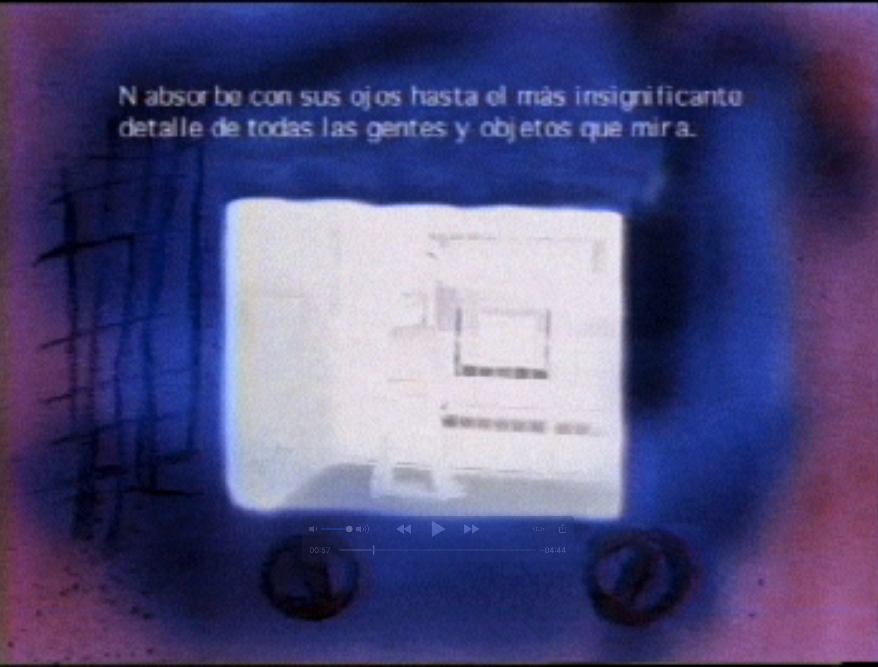 A través de textos e imágenes urbanas, se narra la historia de un personaje llamado "N" que recorre diversos lugares de la ciudad de Lima. Una pintura que representa un aparato de televisión funciona como un encuadre dentro del encuadre.