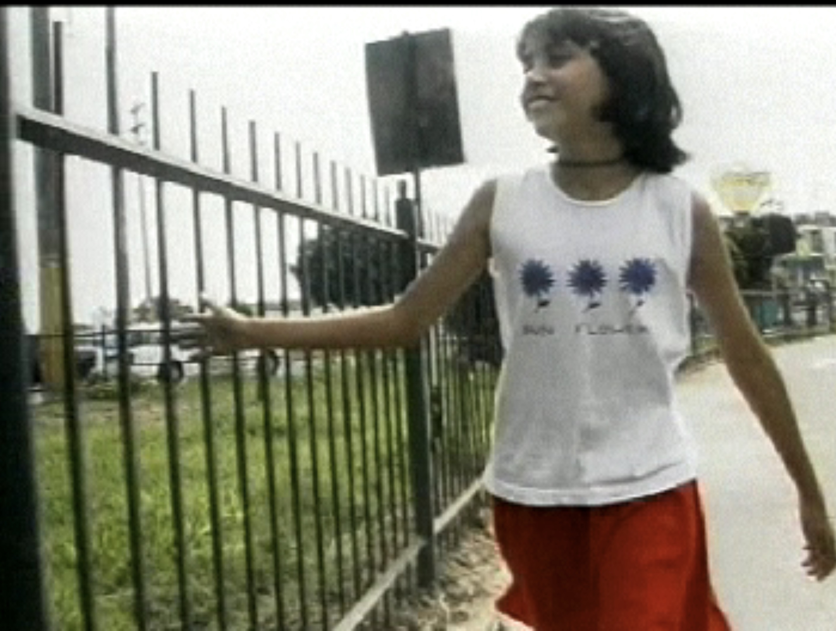 Una niña recorre con entusiasmo diversos lugares hasta verse interrumpida por una autopista.