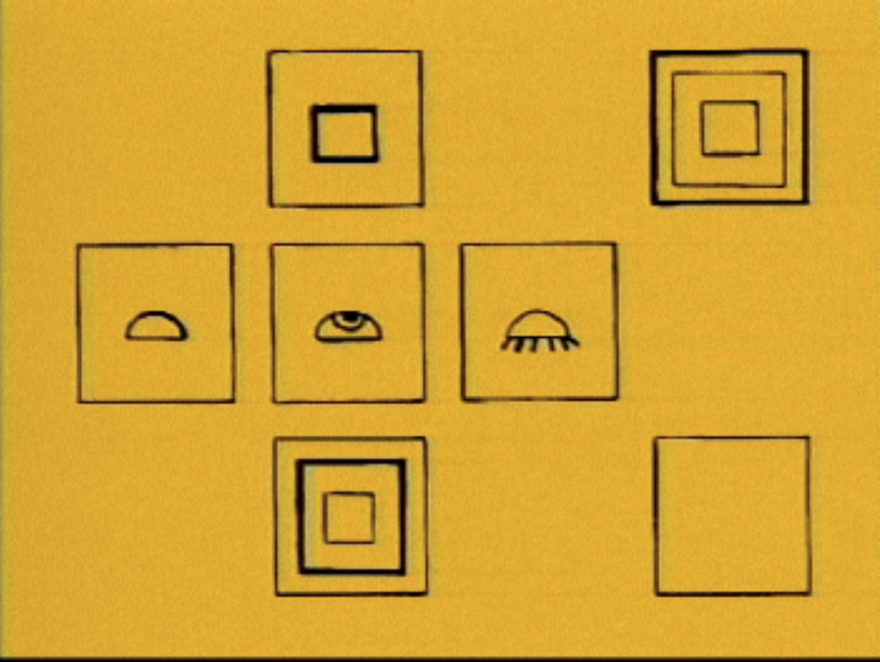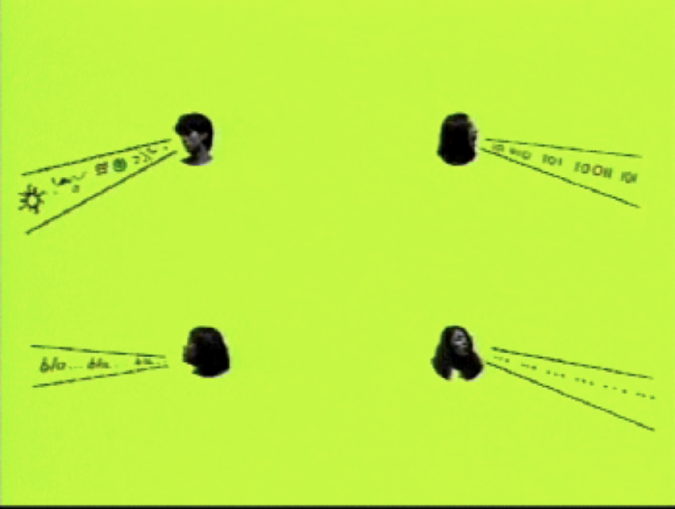 Figuras cuadriculadas e imágenes de mujeres se componen con gritos y colores de fondo.