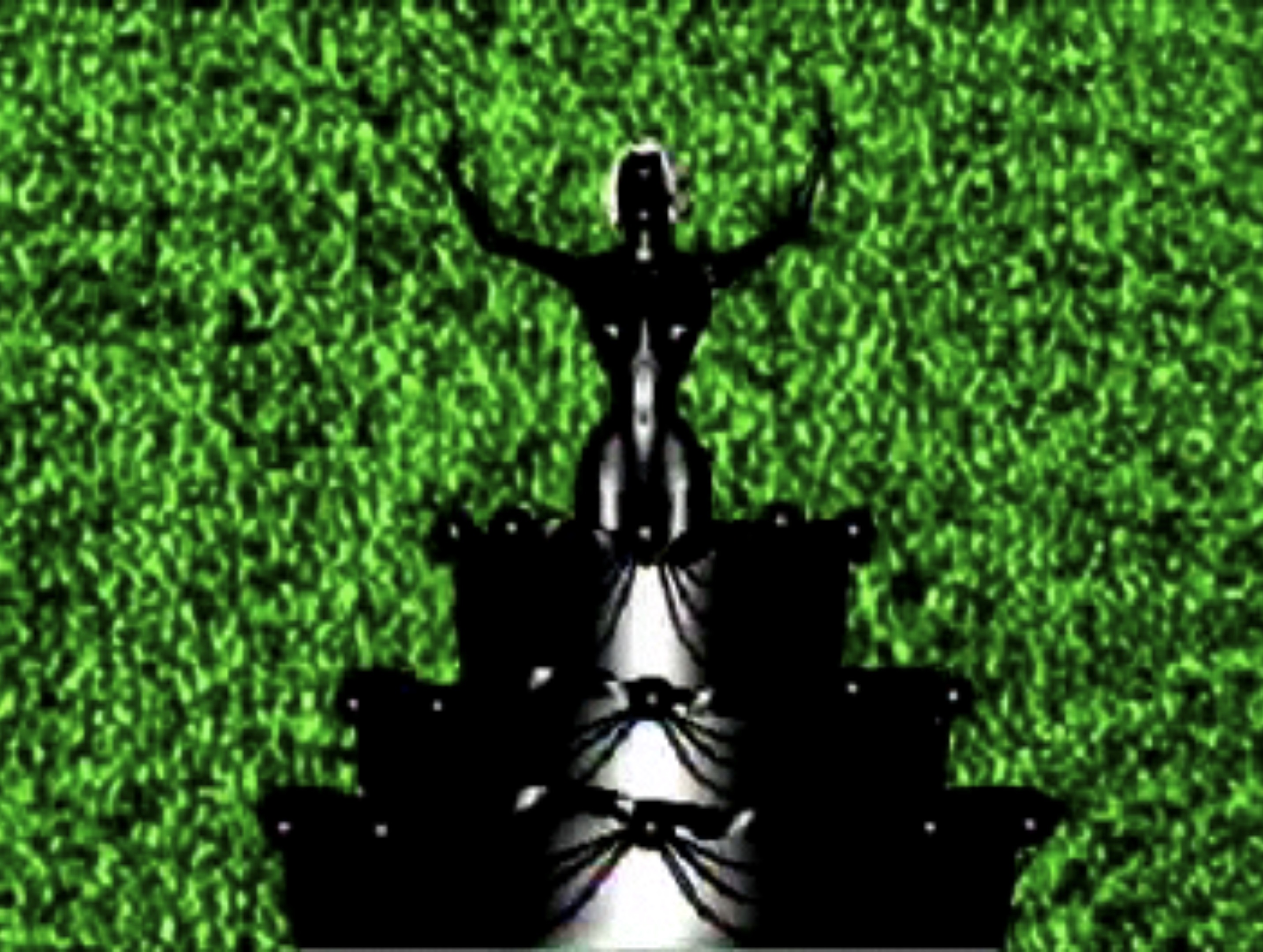 Siluetas y figuras que asemejan la imagen de un presidente, se mezcla con fondos de colores fosforescentes.
